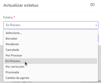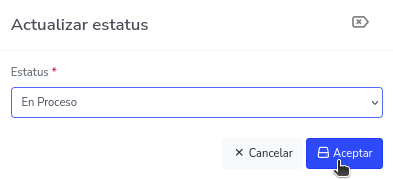 Ahora seleccione el estatus que desee, en este caso, será cambiado a procesado y presione el botón de “Aceptar”.