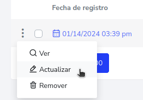Debe de presionar el botón de 3 puntos que se encuentra al lado izquierdo del reporte que desea actualizar y este abrirá un menú emergente en el cual debe seleccionar, la opción de “Actualizar”.
