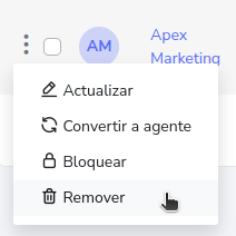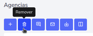 Para eliminar una agencia en especifico, puede presionar el botón que se encuentra en el lado izquierdo de la agencia que desea eliminar y luego en el botón de remover.