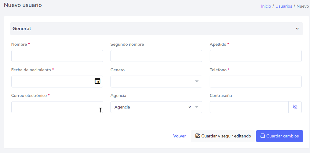 Luego de presionar el botón, aparecerá un formulario, el cual debe de rellenar, para concluir con la creación de un nuevo usuario.