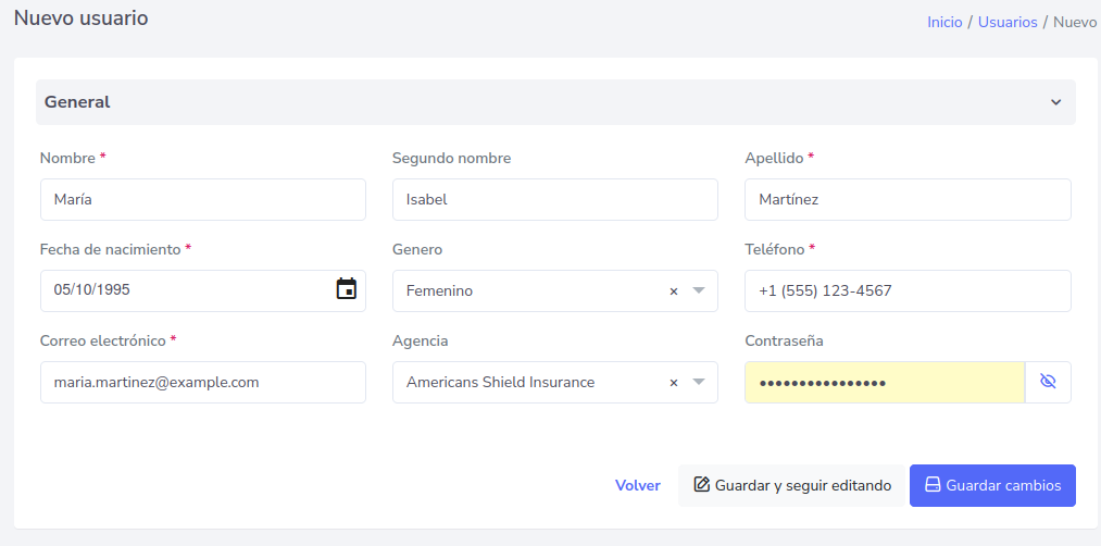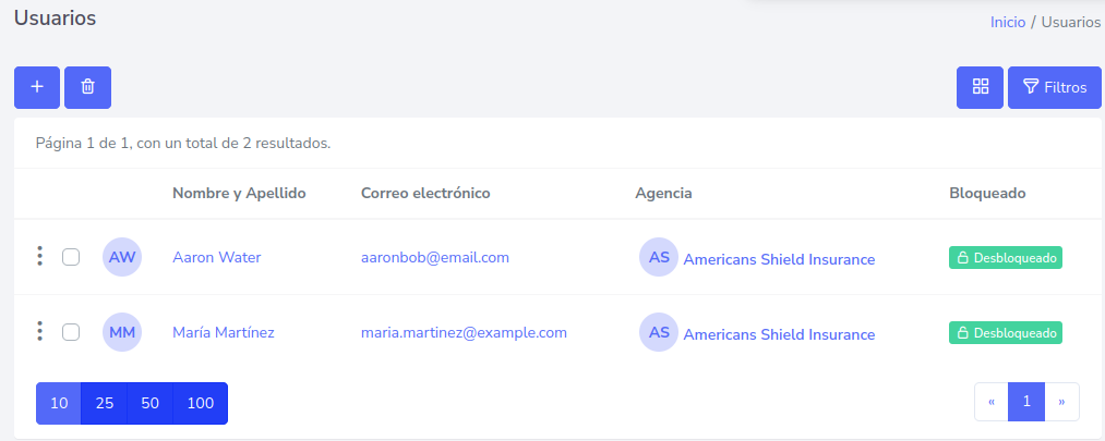 Hacer click en “Guardar cambios” y se verá reflejado el nuevo usuario de la siguiente forma.