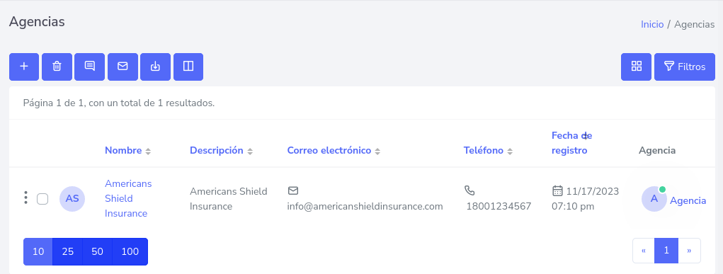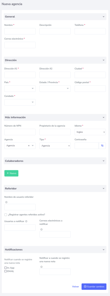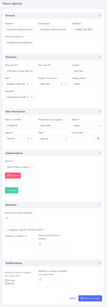 Click en el botón de “Guardar cambios” y listo, creada una nueva agencia.