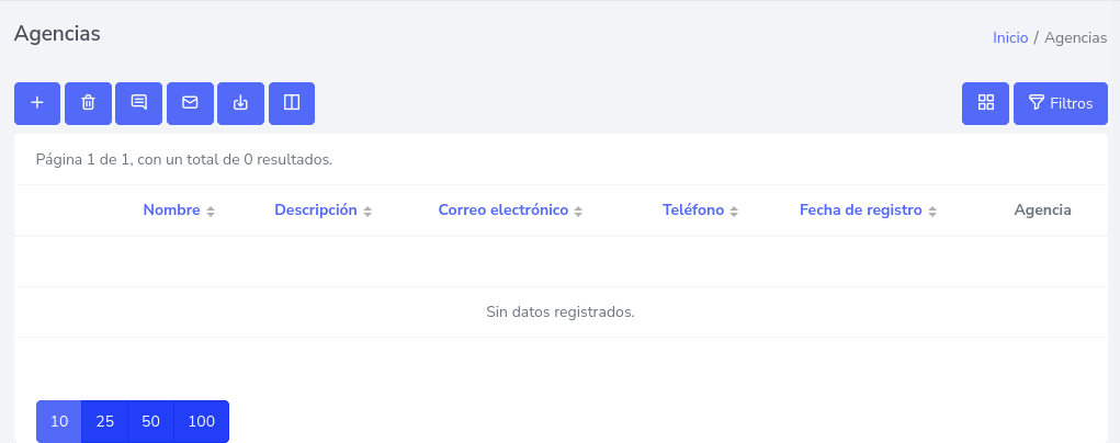 Para crear una agencia, primero se debe de ir a la barra lateral izquierda y presionar el botón de agencias.