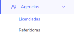 El cual como se muestra en la figura anterior, se abrirá un menú desplegable, se selecciona el tipo de agencia que se desea crear y lo llevará a una nueva ventana que mostrará una lista de agencias previamente creadas, en este caso, no hay alguna agencia creada, así que crearé una agencia Licenciada (puede ser una Referidora ya que el proceso es el mismo).