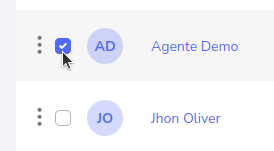 Para borrar un agente o agentes, se debe de presionar el botón de selección que se encuentra en el lado izquierdo, por ejemplo.