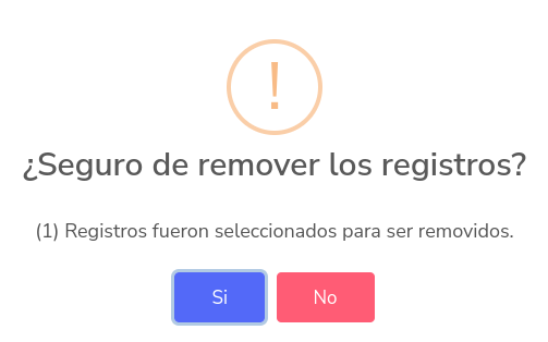 Al hacer click, aparecerá una ventana emergente, en la que preguntara si desea borrar los agentes seleccionados, haga click en “Sí” para eliminarlos, o por el contrario hacer click en “No”.