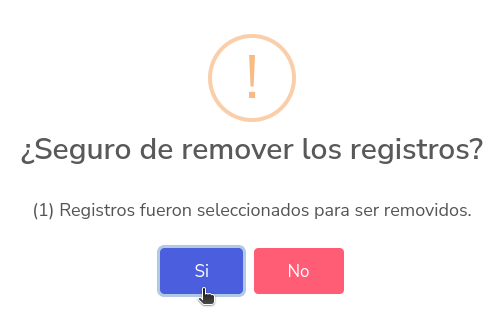 Luego se le será mostrado una confirmación de si desea o no eliminar la póliza.