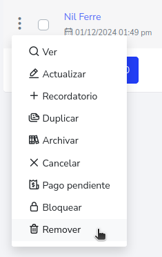 Al hacer click se abrirá un menú desplegable y debe de presionar el botón “Remover”.