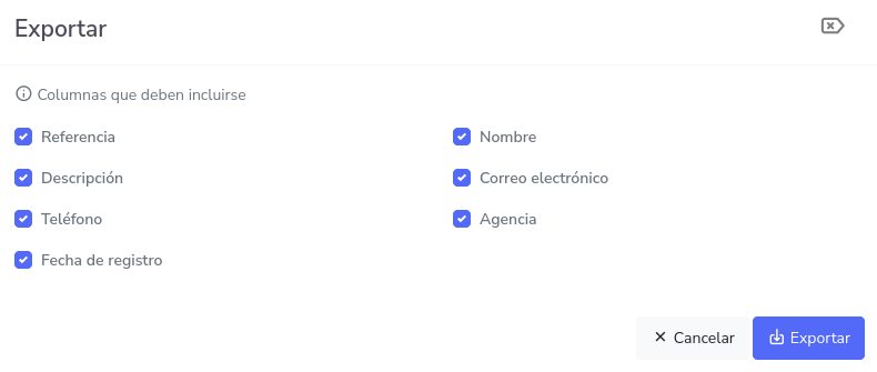 Al presionarlo, tendrá la opción de escoger qué datos desea que se exporten.