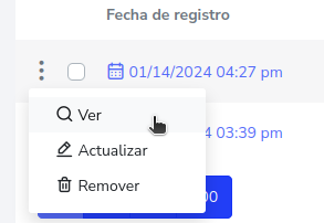 Para realizar dicha acción se debe de ir a al reporte en especifico y presionar el botón de 3 puntos que se encuentra en el lado izquierdo, esto hará que se despliegue un menú emergente y debe de presionar el botón que dice “Ver”.