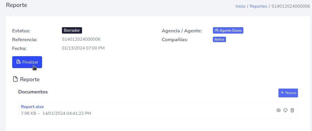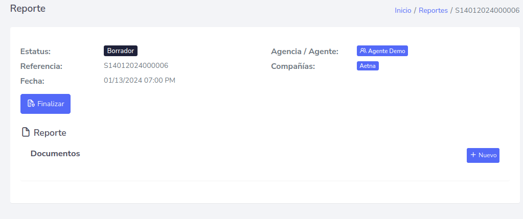 Terminado todo los pasos anteriores, procede a finalizar el reporte, haciendo click en el botón que dice “Finalizar”