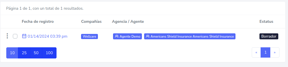 Realizar este paso es sencillo, la información base que se muestra son (Compañías, Agente/Agencia y Estatus) Pero puede cambiar dependiendo si no desea que por ejemplo se muestren las “Compañías”.