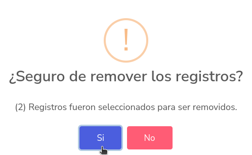 Tendrá una ventana emergente solicitando la confirmación para eliminar las pólizas seleccionadas. Y haga click en “Sí”