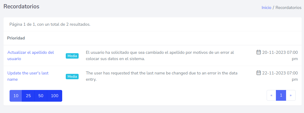 Al presionar este botón, sera enviado a una pagina dedicada a los recordatorios que han sido colocados por otros usuarios.