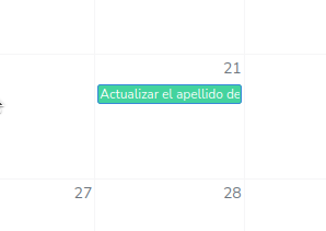 Los recordatorios son mostrados dentro de las casillas de los días, con un color verde y el nombre que lo identifica, como por ejemplo.