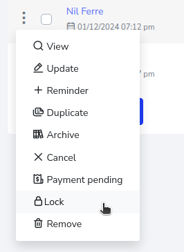 To perform this action, it is necessary to go to the list of policies and press the button with 3 dots on the left side of the selected policy. This will bring up a menu in which you should select the “Lock” option.