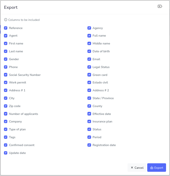 By pressing the button shown below, you will be able to download the policies in Excel format.