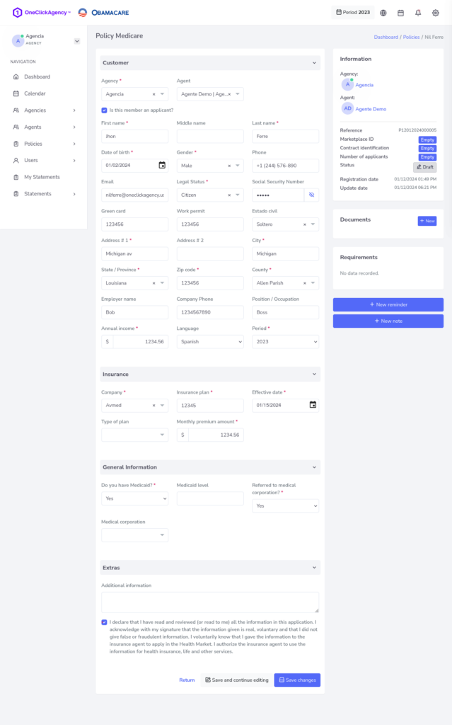 This will take you to a new page, where you have the ability to change the information of the policy. In this case, the name will be changed from “Nil” to “Jhon”.